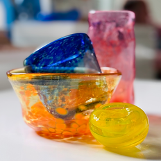 A Personalised 1:1 Beginner's Experience with Samantha Sweet MA RCA Discover glassblowing with this intensive 1:1 beginners' glassblowing lesson, located a 5-minute walk from East Finchley Underground station. This session offers an intimate, one-on-one experience with at least 2 hours tutored hands-on making time without any interruptions. No experience necessary. Your Experience: - Private Class: This intensive session is tailored exclusively for you, ensuring an uninterrupted and personalised learning experience with the studio to yourself. - Craft Basics: Under my experienced guidance, you'll embark on your glassblowing journey by crafting a solid piece, such as a candleholder. As you progress, you'll create a series of blown glass pieces. - Safety First: Your experience begins with a thorough introduction to essential health and safety practices, ensuring your well-being throughout the process. - Hands-On Creativity: This session is very hands-on. Dive headfirst into the process of shaping molten glass, employing time-honored tools and your own breath. - Personalised Masterpieces: During the workshop, you'll be designing, then making a series of four unique pieces that you will take home as cherished keepsakes. You will make: - One solid piece - Three blown pieces You will cover: - Introduction to the equipment. - Gathering molten glass from a furnace. - Shaping and refining glass using traditional tools. - Adding and working with your choice of glass colors. All materials and safety equipment are prepared and awaiting your arrival. Refreshments are available during the session. **Important Note:** Your glass will have to be annealed overnight (cooled down at a controlled rate). You can either collect them in person or have them shipped to your doorstep for a fee of £20.00.